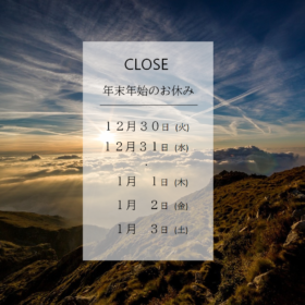 年末年始のお休み 12月30日(火)・12月31日(水)・1月1日(木)・1月2日(金)・1月3日(土) ※新年は4日(日)より営業いたします。 営業…